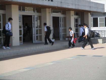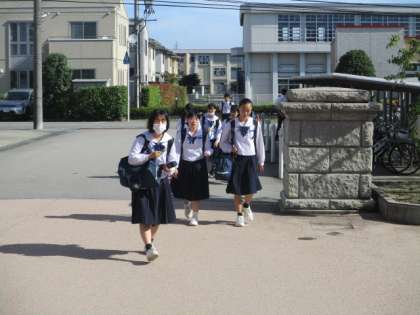 今朝の登校時は晴れになりました。今日は保護者懇談会1日目です。本日の下校完了時間は14:40です。