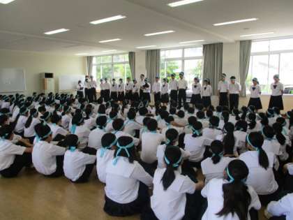 青雲団の様子です。明日は学年別に団別集会を行い、選手や係を決める予定です。