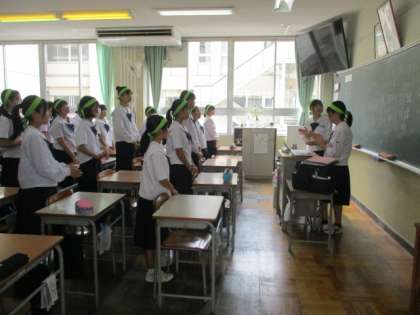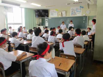 2、3限は体育大会に向けた団別集会を行いました。係や選手を決定します。1年生の教室には3年生が入って支援しました。
