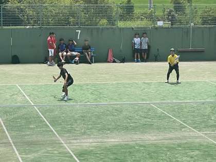ソフトテニス部の山屋選手・山本選手ペアが富山市Bチームの一員として、県民体育大会(中学:団体)に出場しました。