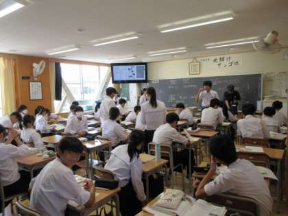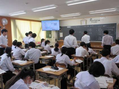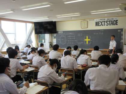 写真は、34H社会、35H社会、36H数学の授業の様子です。