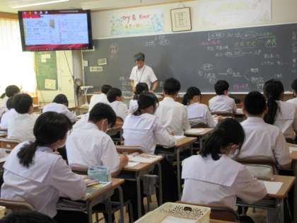 写真は、21H社会、22H英語、23・24H女子保体の授業の様子です。