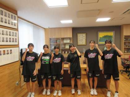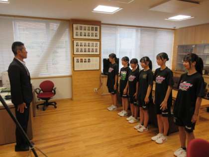 そうした中、明日から全国中学校体育大会に出発する陸上競技部女子リレーチームが校長室に挨拶に来てくれました。