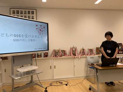 講師に新井スクールカウンセラーをお招きして、「子どものSOSを受け止めよう〜SOSの出し方教育〜」を行いました。