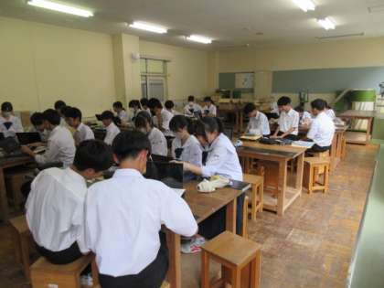 23Hの技術は、金工室でクロムブックを使って調べ学習を行いましたが、エアコンが設置されていない中でも、頑張っていました。