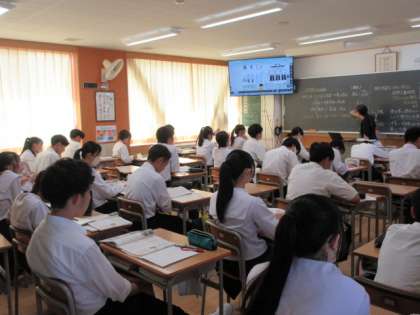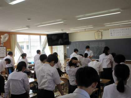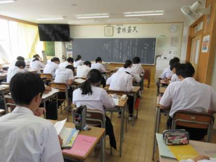 3年生の2限目は、5組以外は全クラス教室で授業を行っていました。