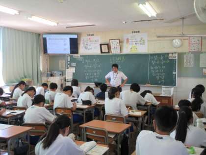 1限目に体育大会学年練習を暑いグラウンドで行った後だったので、涼しい教室での授業は快適でうれしそうでした。