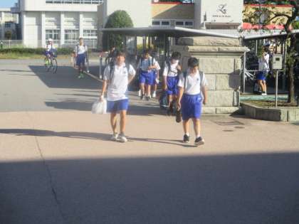 今朝の登校時は晴れになりました。今日は体育大会の予行練習を行います。本日の下校完了時間は17:40です。
