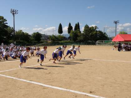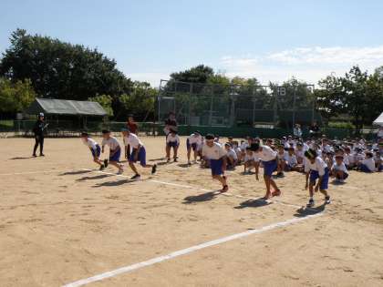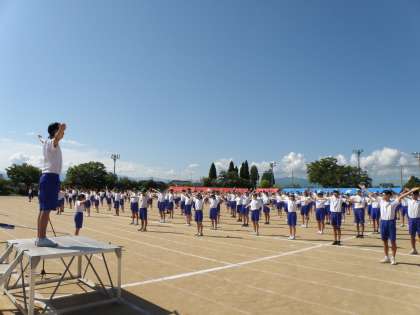 開会式後のラジオ体操を行い、その後全員走の100m走の予行を行いました。