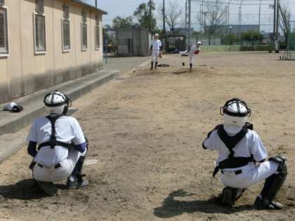 まずは、野球部です。ピッチャーが投球練習をしていました。正面から見ると、カーブが結構キレていました。