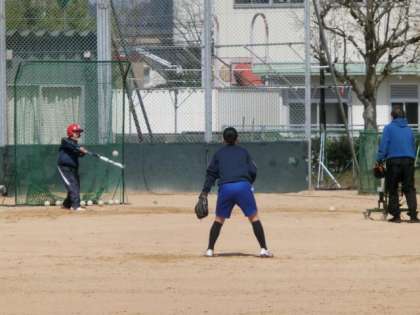 今日は、ソフトボール部を紹介します。1年生はトスバッティング、2年生はマシンを使ったバッティング練習を行いました。ゴロを打ったときは、1塁まで全力疾走していました。