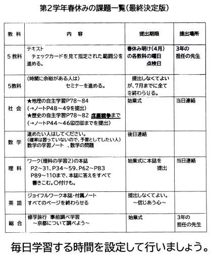 4月4日(土) 春休みの課題