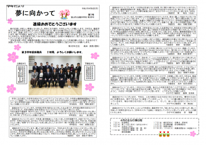 4月6日(月) 配布文書 3学年だより 第1号