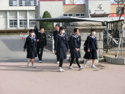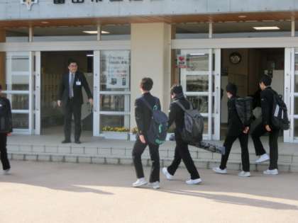 連日の晴天。古野校長も玄関で生徒を出迎え、爽やかな挨拶が飛び交いました。
