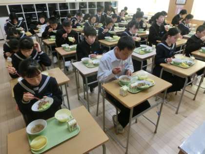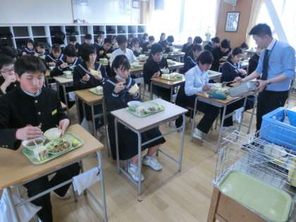 今日から、給食が始まりました。どのクラスも、決めたてホヤホヤの当番が盛り付け・配膳を行い、てんやわんやでした。