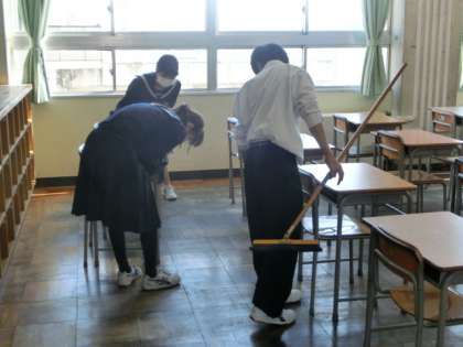 2,3年生は、明日の入学式には立ち会えませんが、期待を込めて準備を頑張りました。2年生は、1年教室と廊下を掃除しました。