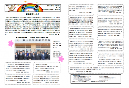 2学年だより第1号(4月)をアップしました。内容は、内容は、2学年スタッフからの言葉と写真、4月の主な行事日程です。