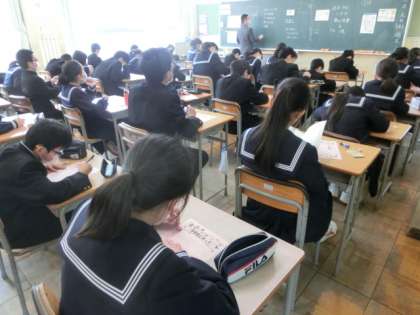 係や委員会、給食や清掃等、役割分担を行いました。午後は、「中学生になって」の作文を書きました。