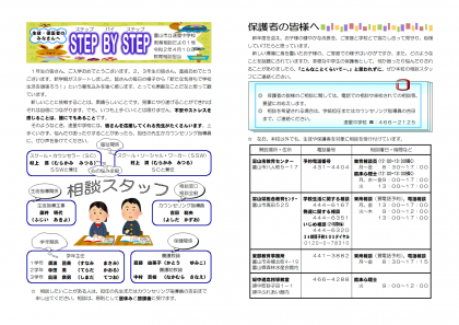 相談室だより第1号(4月)をアップしました。内容は、校内の相談スタッフと校外の相談専門機関の紹介です。