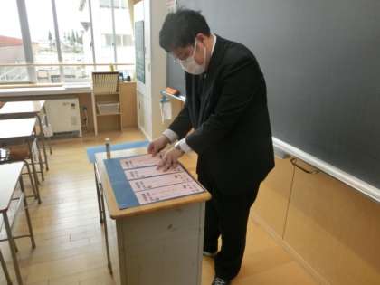 4月16日(木) 3年 環境整備 公開日 2020/04/16 更新日 2020/04/16 3年生 3学年担当教諭は、掲示物を作成したり清掃したり採点したりしました。職員室の「密」を避け、教室でできることは教室で行っています。