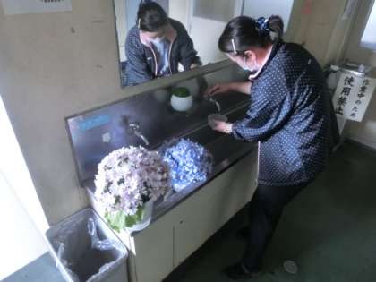 4月21日(火) 今できることを 公開日 2020/04/21 更新日 2020/04/21 全学年 今週から速中オンラインが始まりましたが、登校再開に備えて環境整備や(密にならない程度に少数で)研修会も行っています。 上段は花鉢の水交換、中段は教室掲示、下段は社会科部会の様子です。