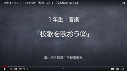 4月24日(金) 1年音楽科「校歌【2】」荒木教諭のオンライン授業を「生徒・保護者ページ」に掲載しました。