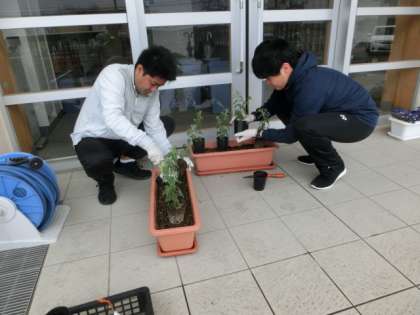 4月25日(土) ブルースターの苗植え 公開日 2020/04/25 更新日 2020/04/25 全学年 かねてから注文してあったブルースターの苗が、22日(水)に届きました(上段)。 早速、普通のプランター(中段)と速中特製の太鼓プランター(下段)に植えました。「信じあう心」の花が咲き誇る日が待ち遠しいです!