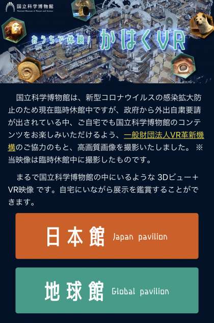 4月26日(日) 国立科学博物館「おうちで体験!かはくVR」の紹介