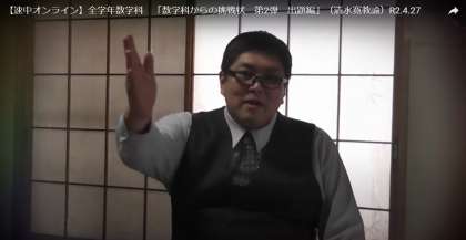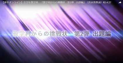 4月27日(月)、全学年数学科「数学科からの挑戦状 第2弾 出題・解答編」清水寛之教諭のオンライン授業を「生徒・保護者ページ」に掲載しました。