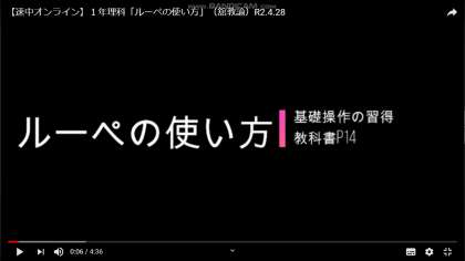 4月28日(火)、1年理科「ルーペの使い方」舘教諭のオンライン授業を「生徒・保護者ページ」にアップしました。