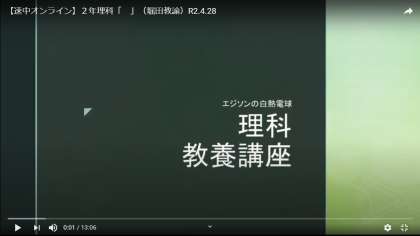 4月28日(火)、全学年理科「教養講座〜エジソンの白熱電球〜」 堀田教諭のオンライン授業を「生徒・保護者ページ」に掲載しました。