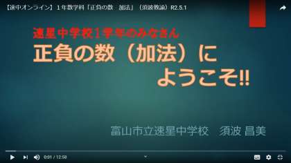 5月1日(金)、1年数学科「正負の数 加法」須波教諭のオンライン授業を「生徒・保護者ページ」に掲載しました。