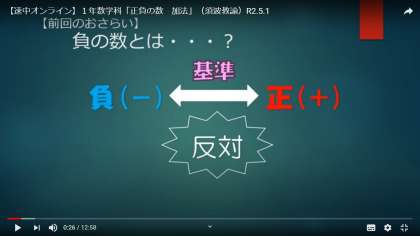 5月1日(金) 1年数学科「正負の数 加法」須波教諭のオンライン授業を「生徒・保護者ページ」に掲載しました。