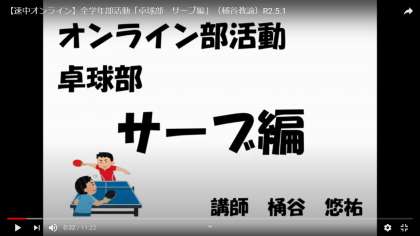 5月1日(金) 全学年部活動「卓球部 サーブ編」 桶谷教諭、清水寛教諭のオンライン授業を「生徒・保護者ページ」に掲載しました。