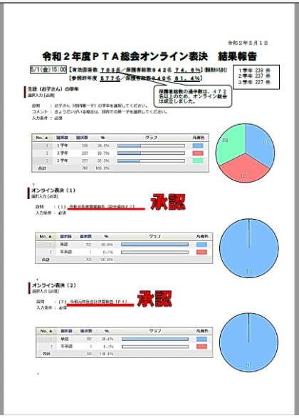 ※ 保護者総数の過半数は、472名以上のため、オンライン総会は成立しました。
