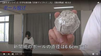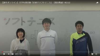 5月2日(土)、全学年 部活動「お家でソフトテニス」濱田教諭、五本教諭、帯刀教諭(ジャグリング協力・別府さん)のオンライン授業を「生徒・保護者ページ」でご覧ください。