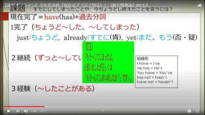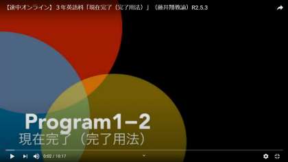 5月3日(日) 3年英語科「現在完了(完了用法)」 藤井翔教諭のオンライン授業を「生徒・保護者ページ」に掲載しました。