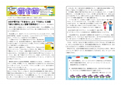 相談室だより第2号(5月)をアップしました。今回は、「コロナ禍では『できない』より『できた』に注目 『当たり前のこと』記録で前向きに!」というインターネットの記事を紹介しています。