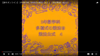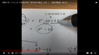 5月7日(木) 3年数学科「多項式の乗法【6】」 黒田教諭のオンライン授業を「生徒・保護者ページ」に掲載しました。