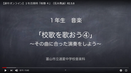 5月8日(金) 1年音楽科「校歌 4」荒木教諭のオンライン授業を「生徒・保護者ページ」に掲載しました。