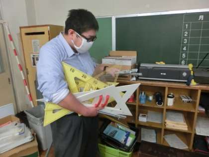 5月9日(土) 教材室を片付けました 公開日 2020/05/09 更新日 2020/05/09 全学年 大型連休明けに教職員で教材室を片付けました。一斉に行うと密になるので、教科ごとに時間を区切って荷物を移動させました(上段:数学科、中段:英語科、下段;国語科)。