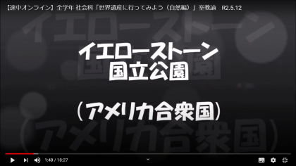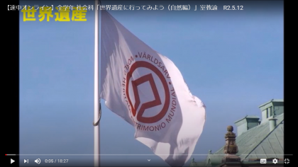 5月12日(火)、全学年 社会科「世界遺産に行ってみよう(自然編)」室教諭のオンライン授業を「生徒・保護者ページ」に掲載しました。