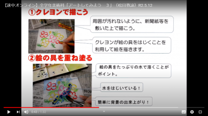 5月12日(火)、全学年美術科「アートしてみよう 3」松田教諭のオンライン授業を「生徒・保護者ページ」に掲載しました。
