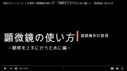 5月13日(水) 1年理科「顕微鏡の使い方 〜観察を上手に行ために編〜」 舘教諭のオンライン授業を「生徒・保護者ページ」に掲載しました。
