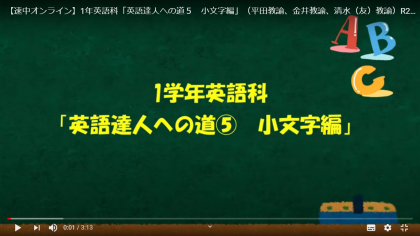 5月15日(金) 1年英語科「英語達人への道5 小文字編」平田教諭、金井教諭、清水(友)教諭のオンライン授業を「生徒・保護者ページ」に掲載しました。