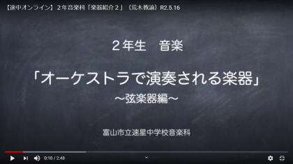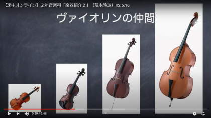 5月16日(土) 2年音楽科「楽器紹介2」 荒木教諭のオンライン授業を「生徒・保護者ページ」に掲載しました。