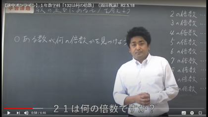 5月18日(月)、1年数学科「132は何の倍数」 濱田教諭のオンライン授業を「生徒・保護者ページ」に掲載しました。