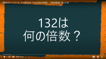 5月18日(月) 1年数学科「132は何の倍数」 濱田教諭のオンライン授業を「生徒・保護者ページ」に掲載しました。