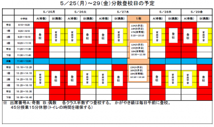 5/25(月)〜29(金)分散登校日の予定をお知らせします。(PDFで開きます。)