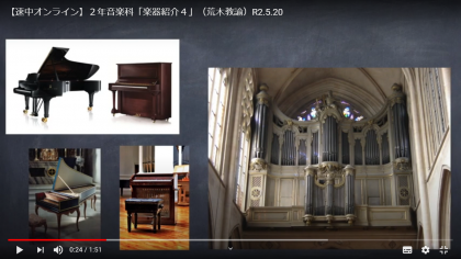 5月20日(水)、2年音楽科「楽器紹介4」 荒木教諭のオンライン授業を「生徒・保護者ページ」に掲載しました。